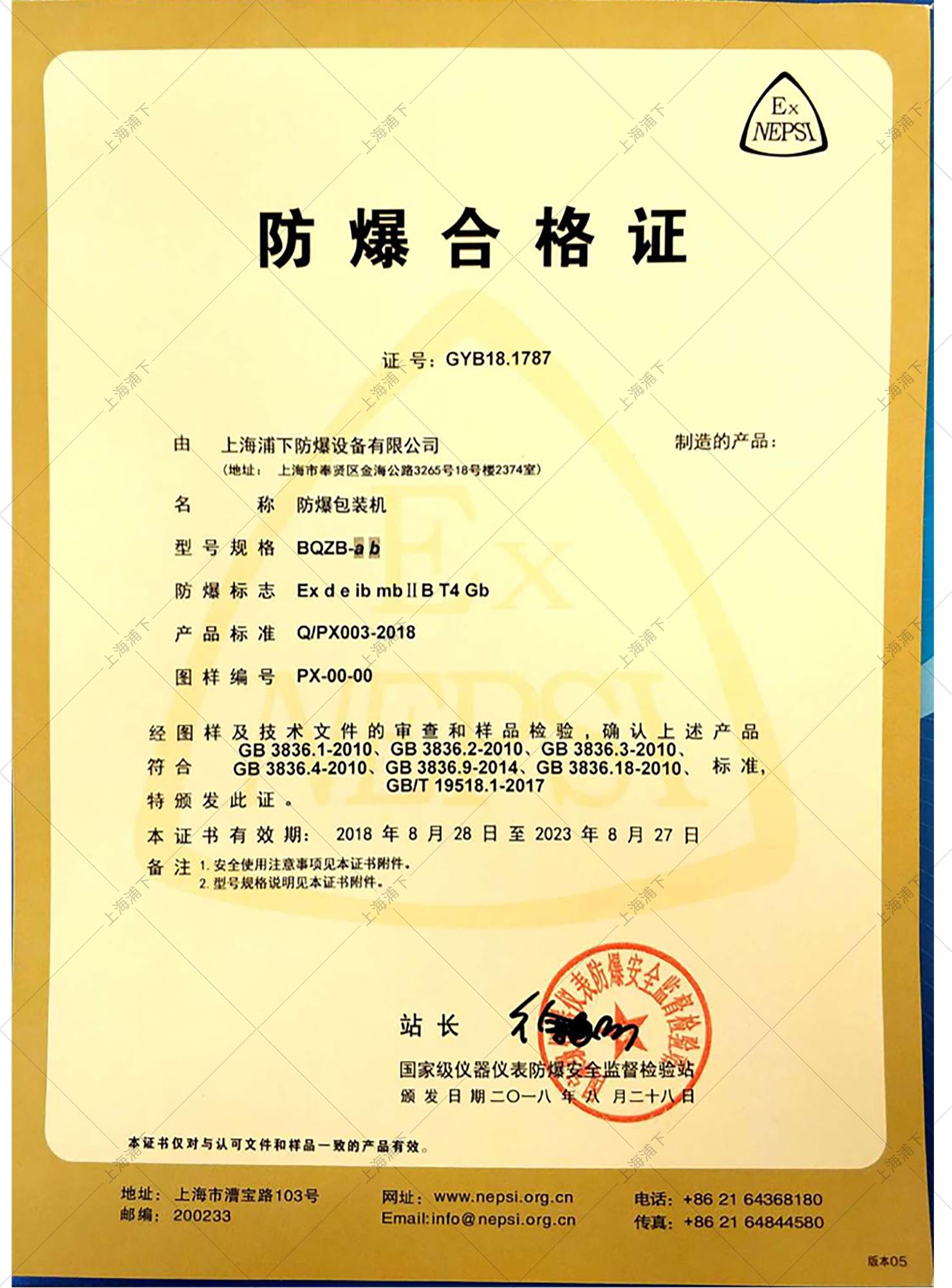8、產品具有IIB級標準,可用溫度組別T2、T3、T4的爆炸性氣體混合物的危險場所,防爆等級達到(ExdiaIIBT4、內膽IICT4),產品經過國家級防爆檢測站檢驗,并具有國家級防爆合格證。